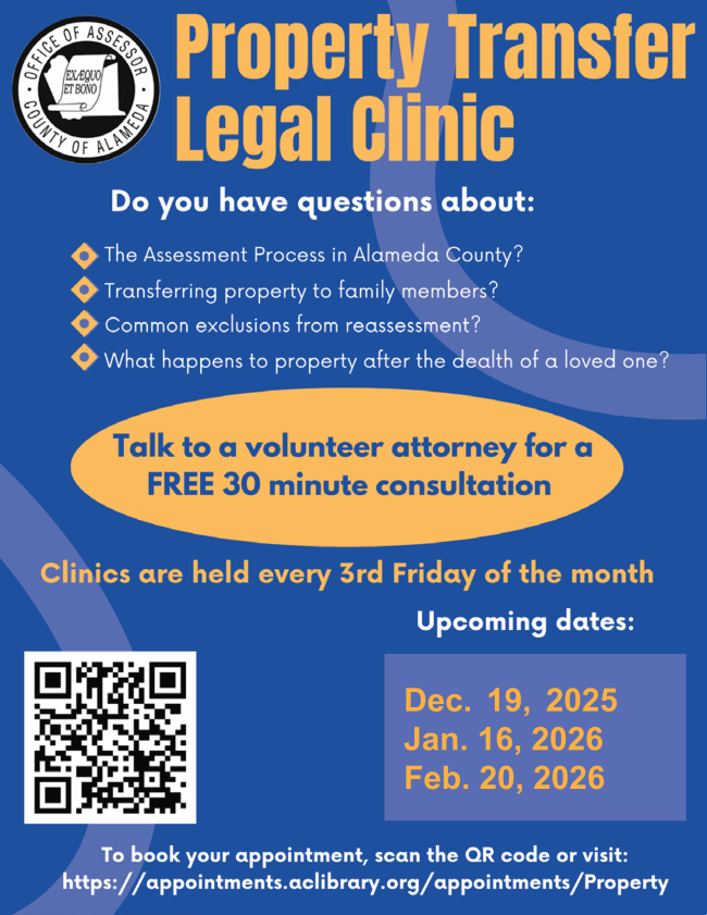 If you're considering building an ADU or JADU, our office is here to help you understand how it may affect your property assessment. Visit us at County Administration Building 1221 Oak Street, Room 145, Oakland (During normal business hours) or call: (510) 272-3787.