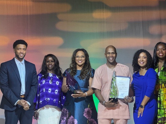 | | | Oakland Celebrates Black History, Culture, and Community | | (L-R): Oakland City Council President Kevin Jenkins, Nola Turnage, Black Filmmaker Impact Honorees Adriane Hopper Williams & Derrick Williams, Mistress of Ceremonies and Bay Area NBC reporter Velena Jones, and President of OAACC Cathy Adams. | | |